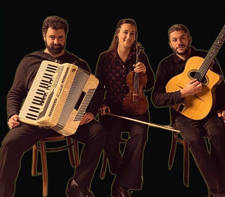 Porté par des influences grecques et françaises, le trio AMADA vous entraîne avec énergie dans un voyage musical aux sonorités des Balkans, d’Asie Mineure et des cultures tziganes. Leur musique, vivante et métissée, tisse des liens entre traditions populaires et émotions partagées.