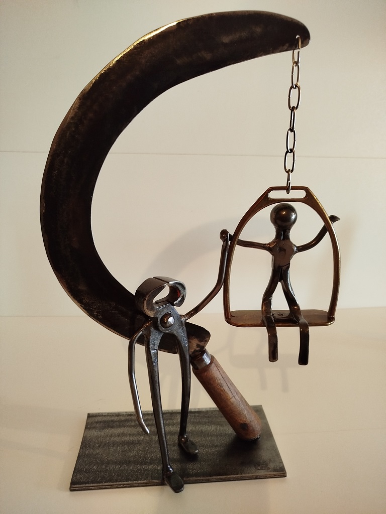 Tôlier chaudronnier de métier, Claude Bouchereau est devenu un transformateur d'outils. Il façonne les objets, les sculpte, leur donne une seconde vie et une histoire au gré de leurs formes et de son imagination.