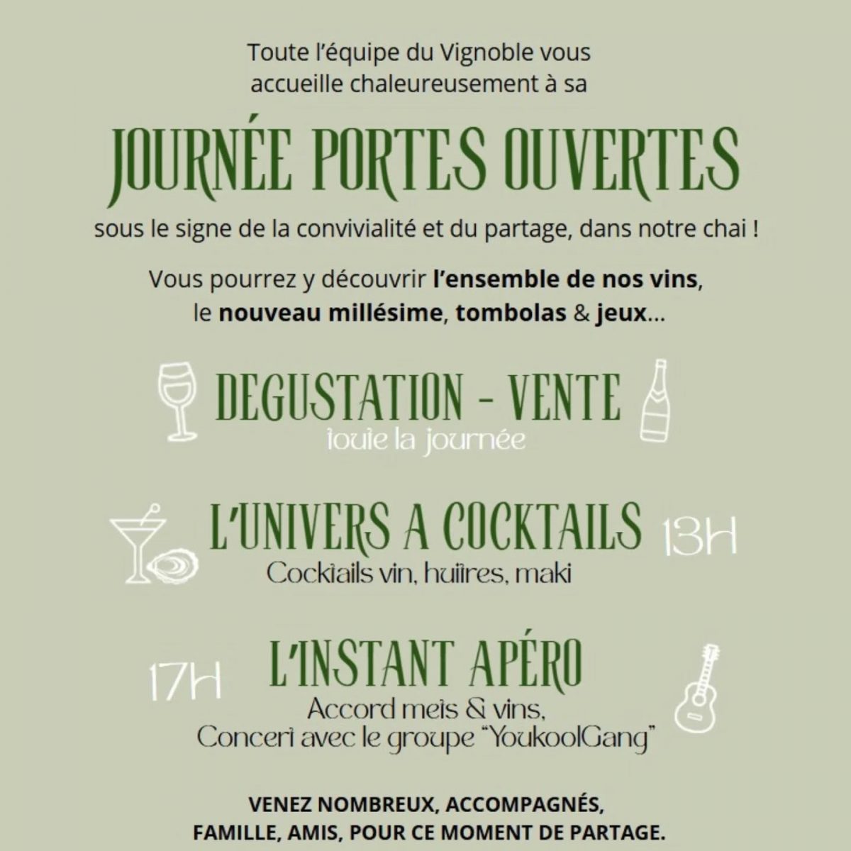 17h00 : L'INSTANT APÉRO - accords mets et vins, concert avec le groupe "YouKoolGang"