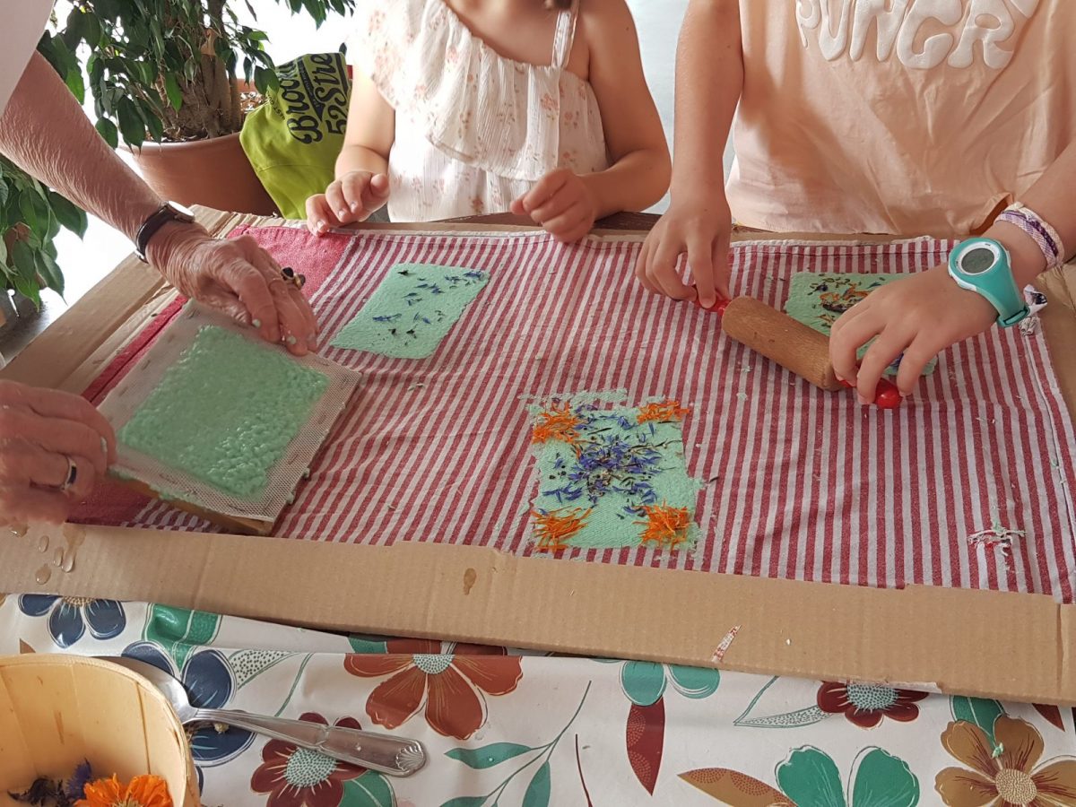 Au fil des quatre saisons, les enfants âgés de 3 à 6 ans s’éveillent et s’émerveillent au jardin. En août, on fabrique une carte postale, on cuisine des pop-cake et on déguste le goûter tous ensemble.