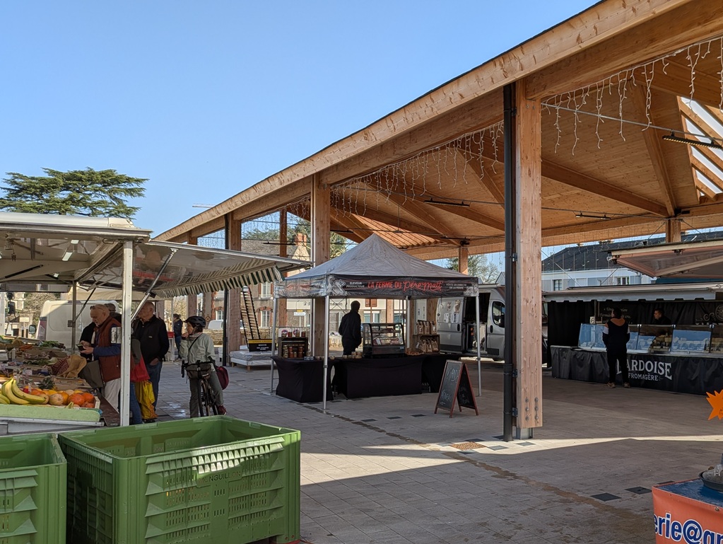 Le marché a lieu tous les mercredis matins de 8h30 à 12h30, sous la halle, sur la Place de la Févrière.