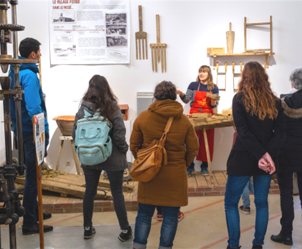Visite guidée du musée de la Maison du Potier. Depuis l'extraction et l'élaboration de l'argile jusqu'à la mise en forme des poteries locales, découvrez au travers la présentation de maquettes, de machines et de démonstrations, l'histoire et les traditions potières du Fuilet.