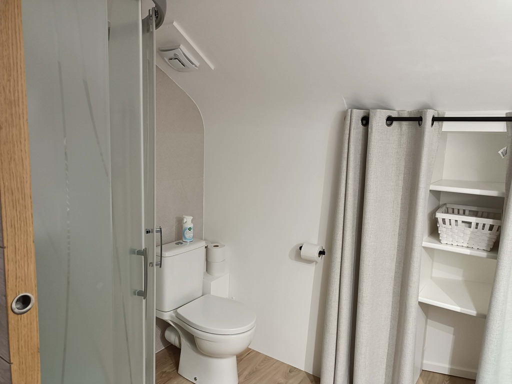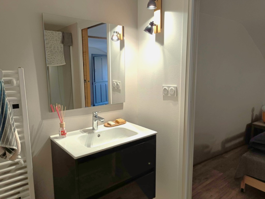 -Une salle d’eau avec douche et WC privatifs.