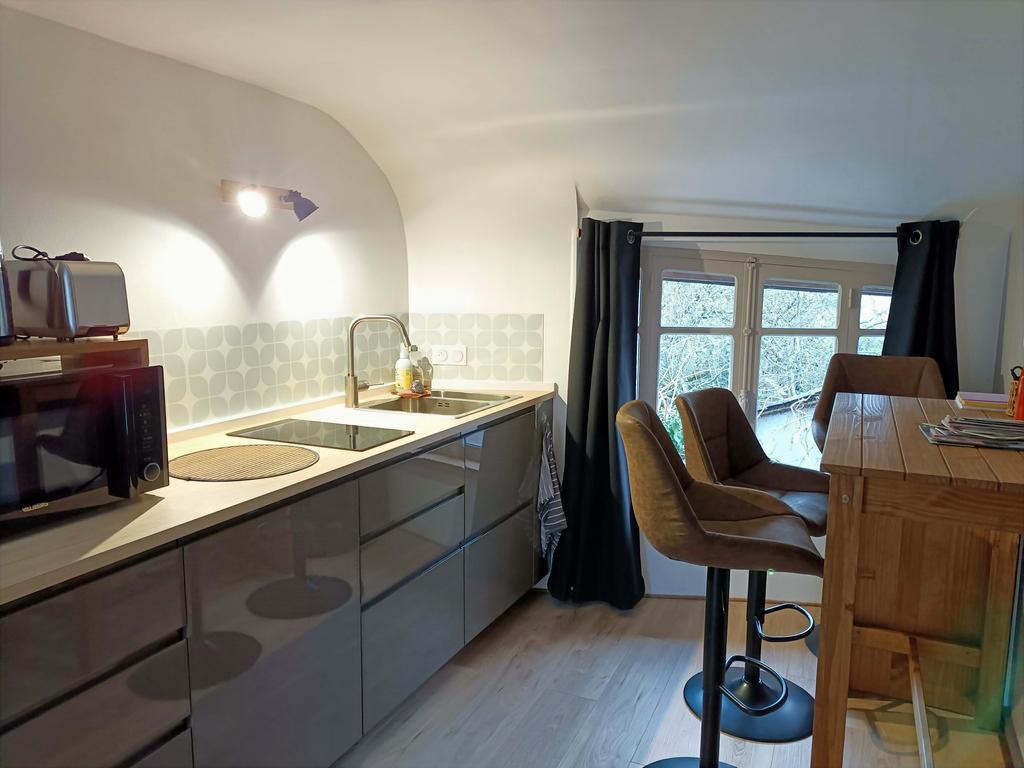 - Une kitchenette toute équipée (plaques induction, micro-ondes combiné, frigo, sans oublier l'indispensable machine à café et le grille-pain pour un petit-déjeuner de champion).