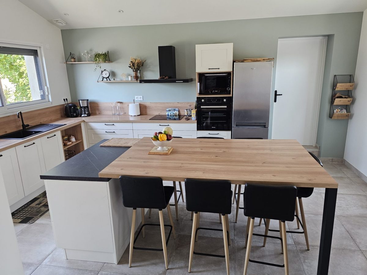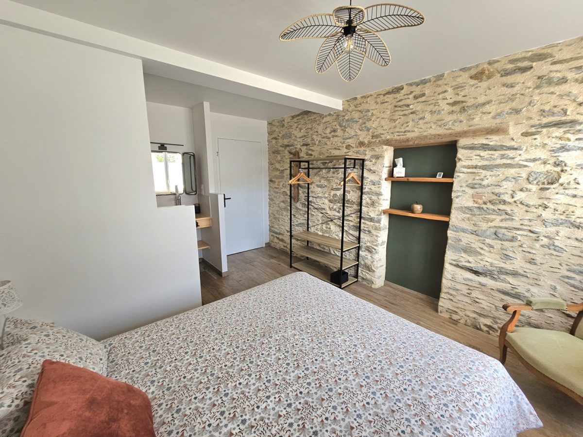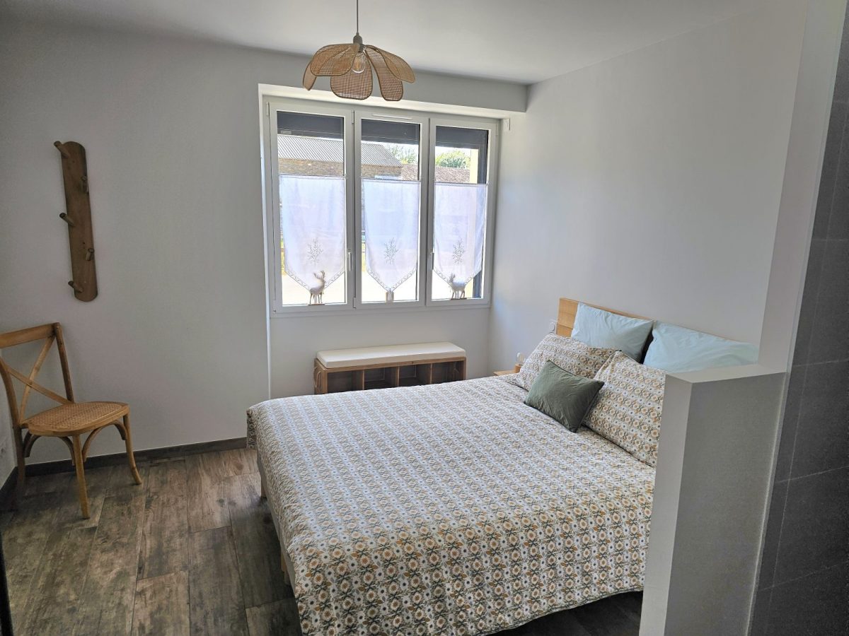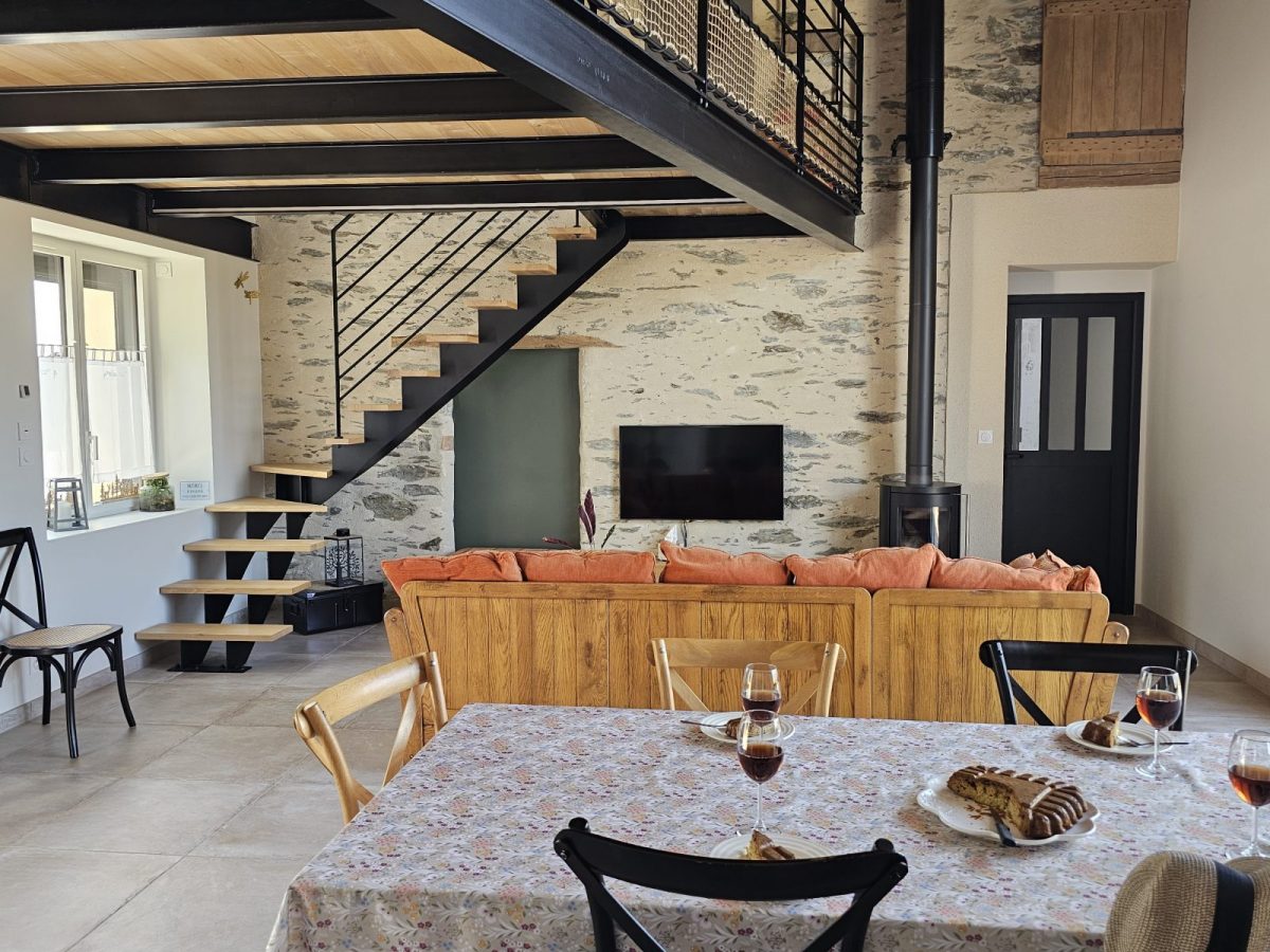 Avec sa vue sur la campagne et la forêt, sa belle charpente en bois, ses murs en pierre apparente, son poêle, son filet suspendu, sa grande cuisine équipée, son salon reposant et ses quatre chambres avec salles de bain attenantes, ce logement de charme vous fera vous sentir comme à la maison...