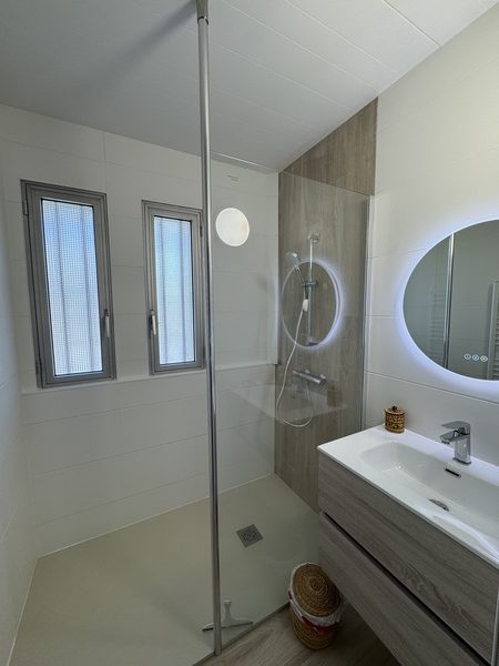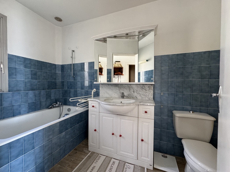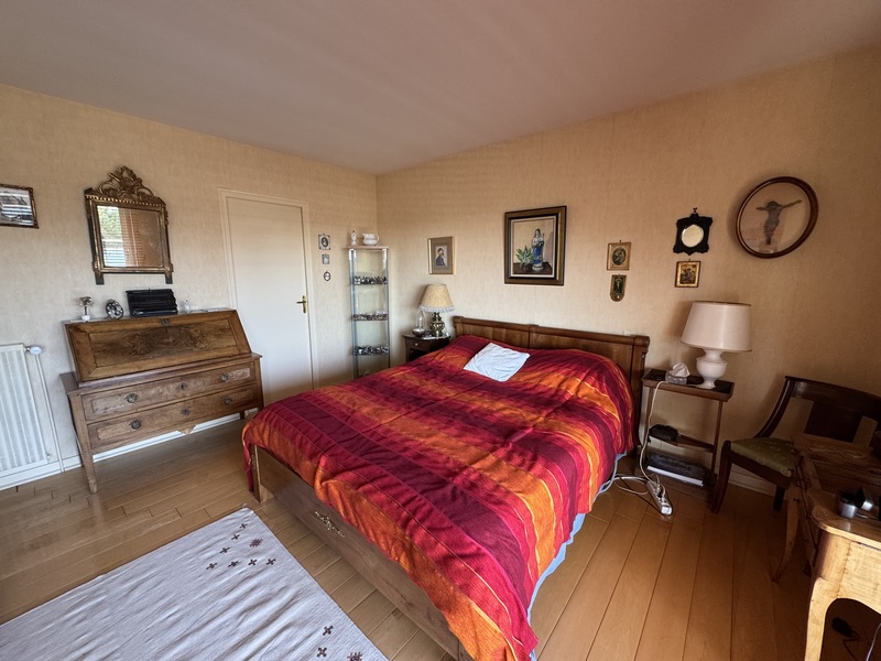À l’étage, un palier dessert deux chambres disposant chacune de leur salle de bains, un dortoir équipé de trois lits simples pour les enfants, ainsi que deux autres chambres avec lits doubles. Une salle d’eau indépendante vient compléter cet espace nuit.