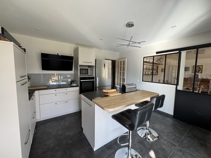 Vous pourrez vous retrouver autour de la cheminée dans une pièce de vie chaleureuse et conviviale. La piscine est également l’un des atouts majeurs de la maison : petits et grands pourront y profiter de précieux moments de détente.