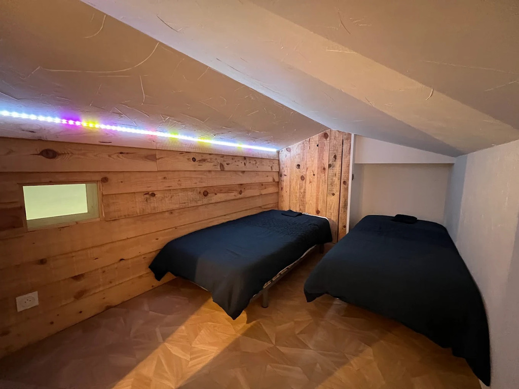 - Mezzanine avec 2 lits simples (90x200) - accès par une échelle de meunier – déconseillée aux très jeunes enfants