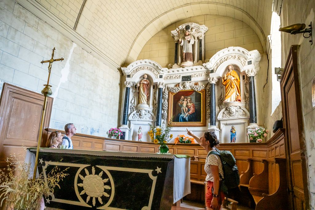 D'extérieur, observez le remaniement des murs au fil des siècle. A l'intérieur, retrouvez la structure à nef de facture romane. Au fond de l'église, prenez le temps d'observer ce magnifique retable du XVIIIème siècle où figure un tableau de la Sainte Famille, inspiré d'un original du XVIème siècle : la Vierge aux cerises. Egalement découvrez une croix de procession remarquable du début du XIXème siècle.