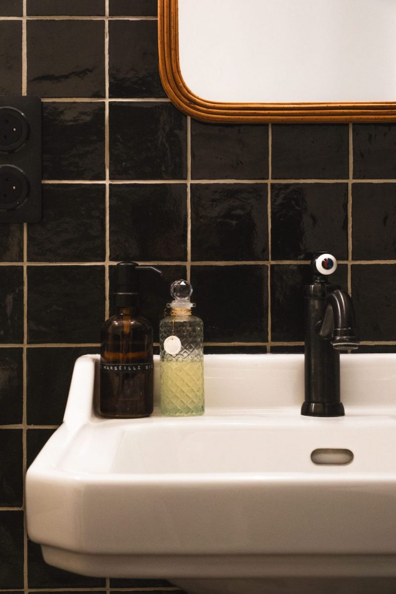 La salle d'eau est équipée d'une grande douche, de deux lavabos, un sèche-serviette et un sèche-cheveux, plan à langer, baignoire bb. Vous y trouverez des produits d'hygiène certifiés bio de la marque locale Coslys.