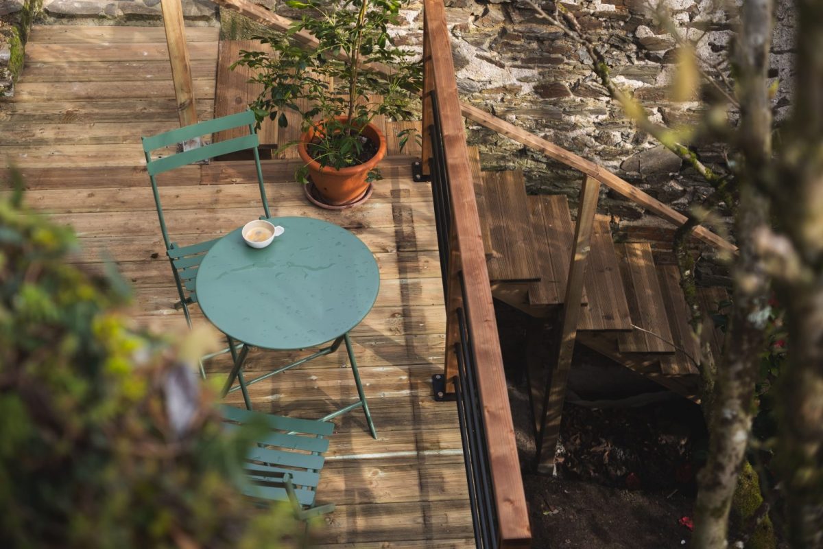 La chambre double "le rocher" a un accès exterieur et une terrasse privative. Vous y trouverez un lit queen size, une penderie, une salle de bain (baignoire, lavabo, wc, sèche serviette et sèche cheveux). Comme dans la suite, vous trouverez du gel douche de la marque Coslys.