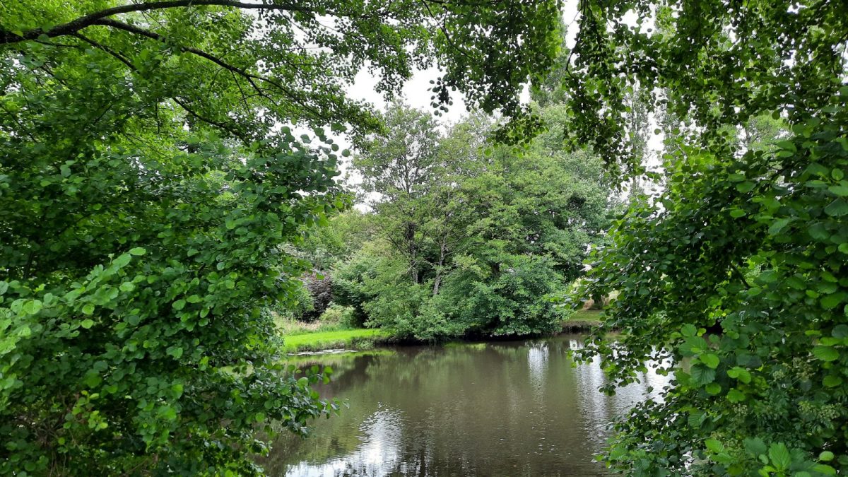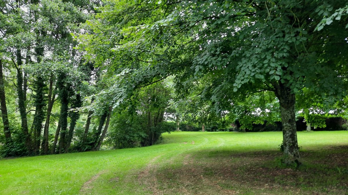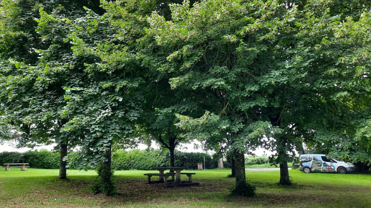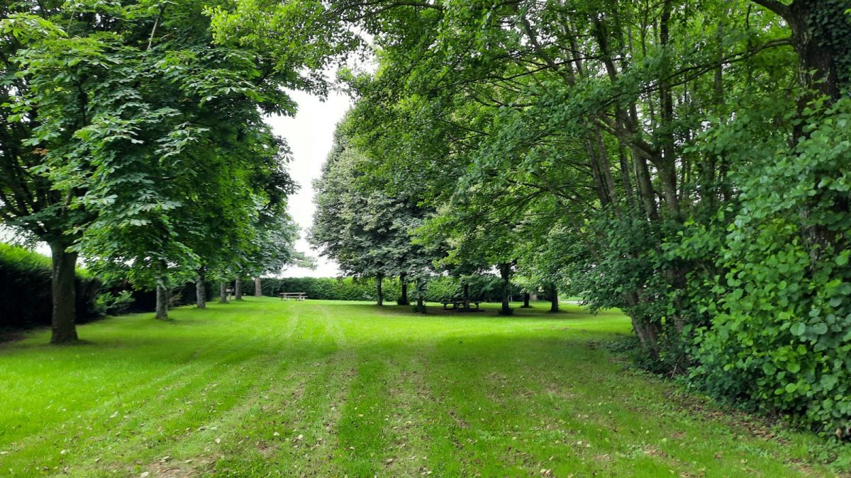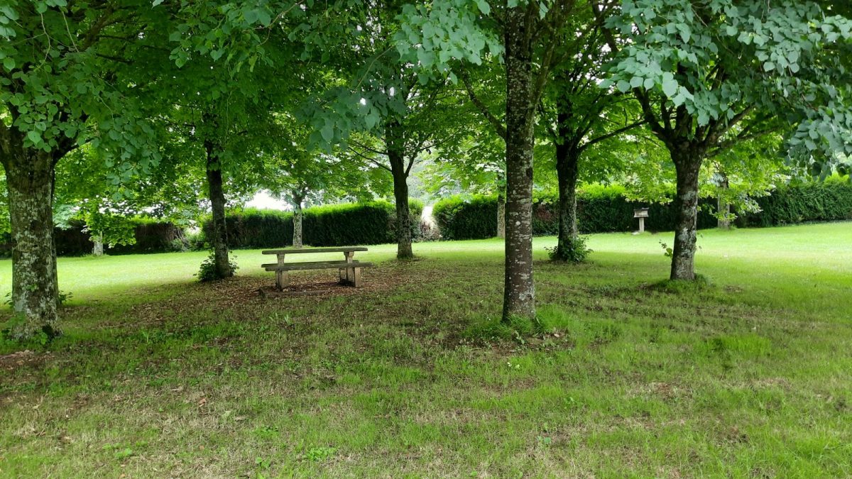 Aire de pique-nique située avant l'entrée de la commune de La Chapelle-Aubry, sur la route de Beaupréau, dans un cadre verdoyant et ombragé au bord du ruisseau de la Jousselinière.