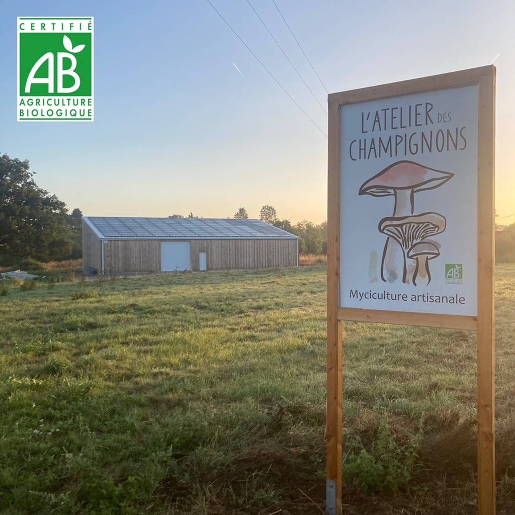 Implanté à Tillières, aux portes du vignoble nantais, l’atelier est ouvert les mardis et vendredis de 17h à 19h. Fabrice y cultive ses champignons sur des substrats fabriqués sur place. Ils sont constitués d’un mélange de sciure, de paille et de céréales aussi locales que possible.